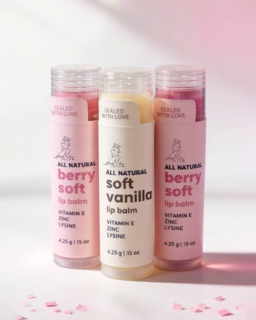 Berry Soft + Soft Vanilla Lip Balm with Vitamin E, Zinc & Lysine (2 Berry + 1 Vanilla Pack) – All Natural Hydrating Balm