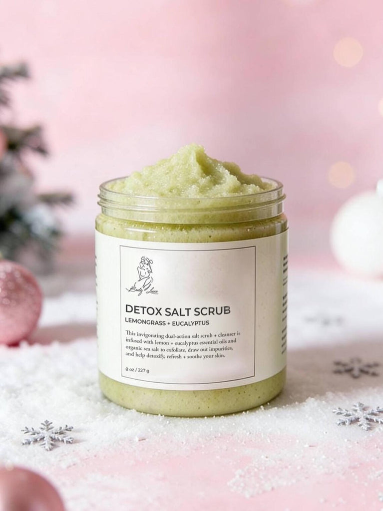 Lemongrass & Eucalyptus Detox Scrub: Bali-inspired sea salt blend draws out toxins, buffs dead skin, rinses silky. Resets your body with a fresh, spa scent.