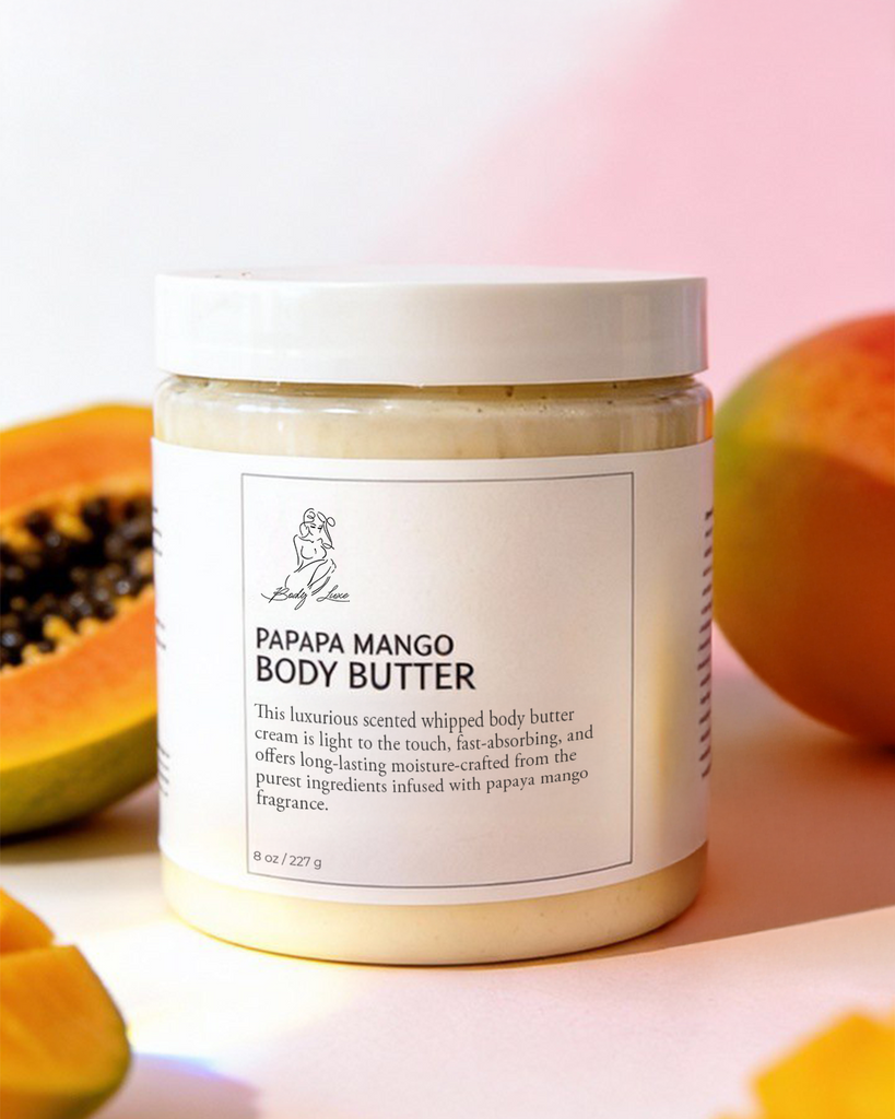 Experience the ultimate in skincare with our Papaya Mango whipped body butter. Light-to-the-touch, it melts in fast and locks moisture, no dyes. Only the gentle, tropical scent of papaya and mango butter. Perfect for sensitive or eczema-prone skin, anyone who wants clean softness. Just butter. Just glow without compromise.